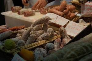 ここでは中に入ると、首に掛けられる袋に入ったワイングラスをもらいます。そこからはトリュフの香が会場いっぱいに広がり、たくさんの業者が新鮮なトリュフを販売しています。同じく会場内には一緒にサラミ、チーズ、パスタなども販売されています。もちろんもらったワイングラスで、中のバーや、すべてのワインのブースでテイスティングができるので、知らず知らずのうちにワインがすすんでしまう、究極のイタリア食材のお祭りのようでした。
