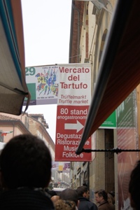 At the entrance of the fair, you’ll get a wine glass in a bag you can dangle around your neck. And as soon as you enter to the market, you’ll be covered with the aroma of truffle. There’re lots of truffle hunters and shops are selling the fresh-caught truffles, along with salami shops, cheese shops, and of course, winery shops. Basically you can taste everything before you buy, so you don’t notice how much you drink or eat in this fair.