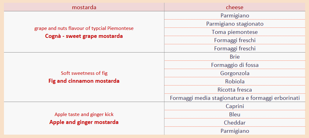 Please see below mostarda and cheese marriage list for reference and please find your own way to enjoy!
