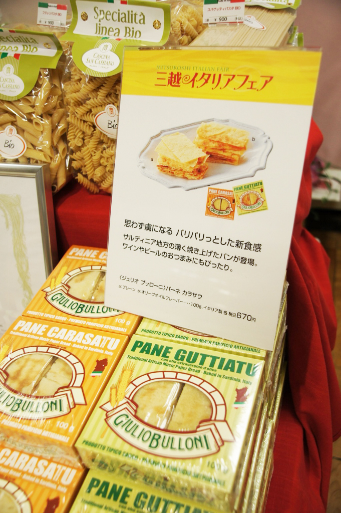 9 days from April 9, Italian Fair at Nihonbashi Mitsukoshi was taken place and "Pane Carasau" was at new promotion for the fair.