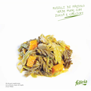 Cut the pumpkin in small squares and the artichokes in pieces. Add them into the pan with the leeks until you get a ragù.